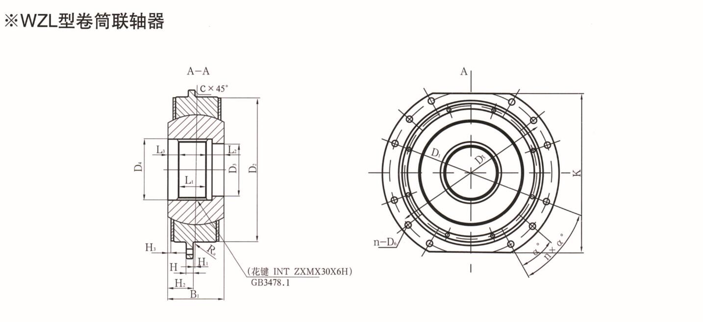 WJ型漸開線花鍵聯接球面滾子聯軸器