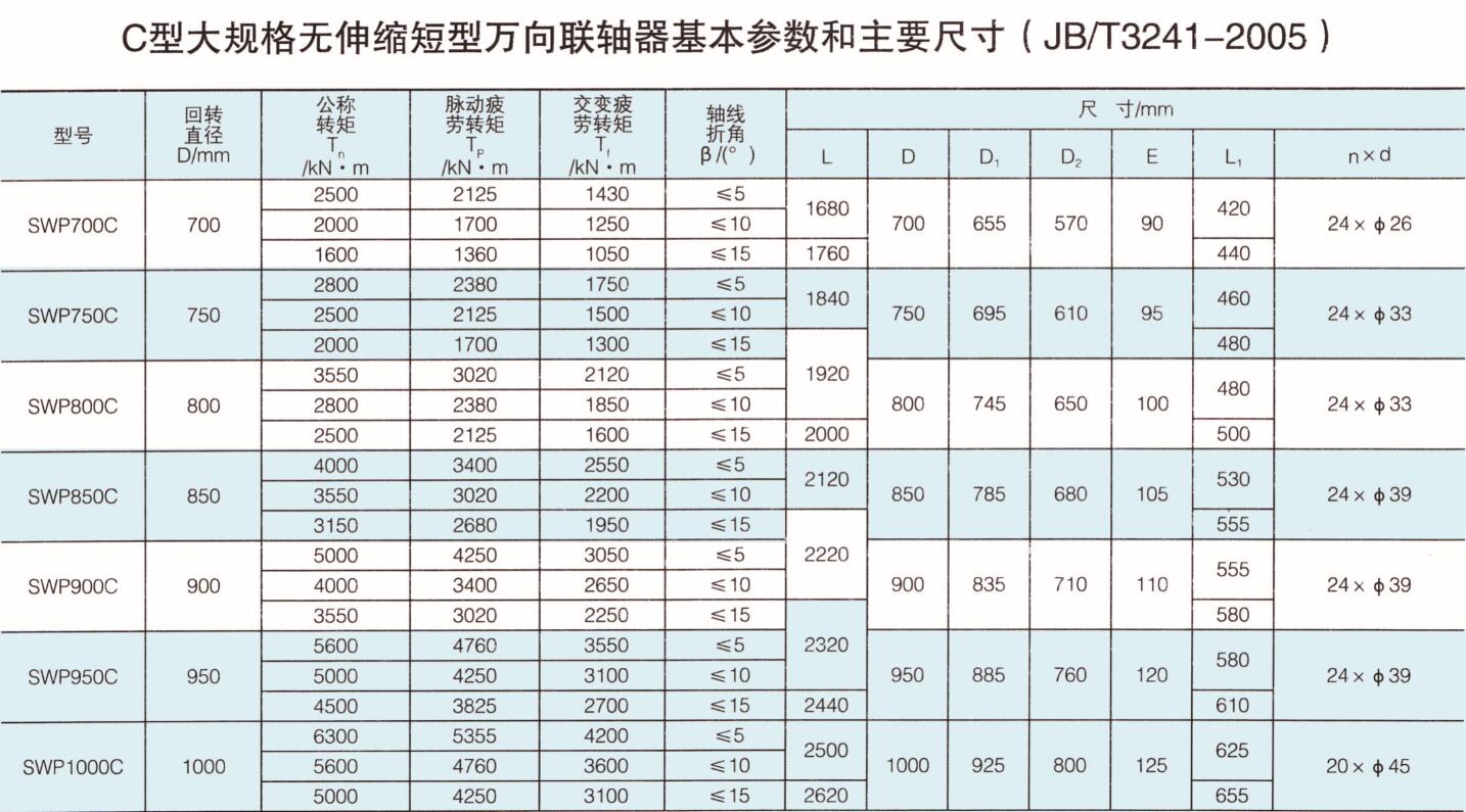 C型大規(guī)格無伸縮短型萬向聯(lián)軸器 |