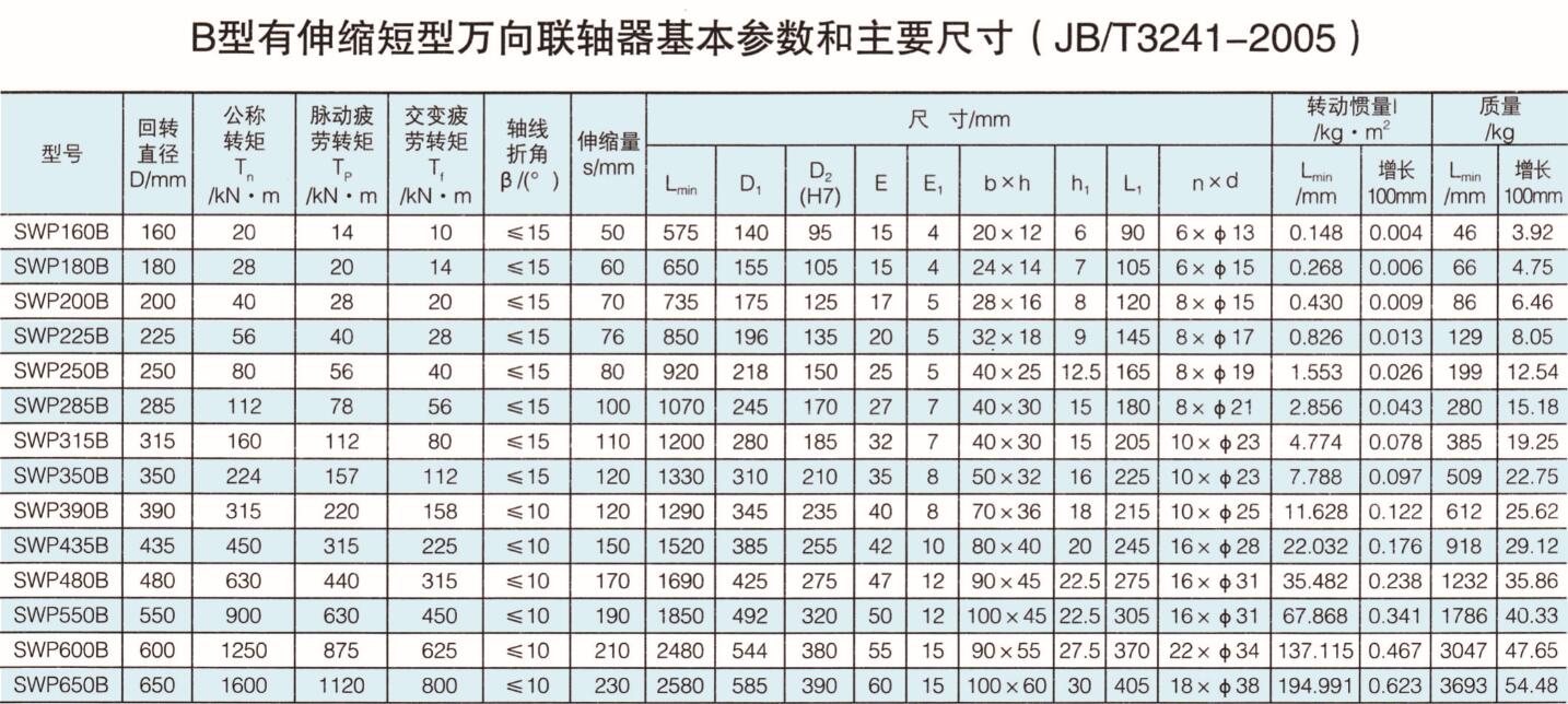 B型有伸縮短型萬向聯(lián)軸器 |