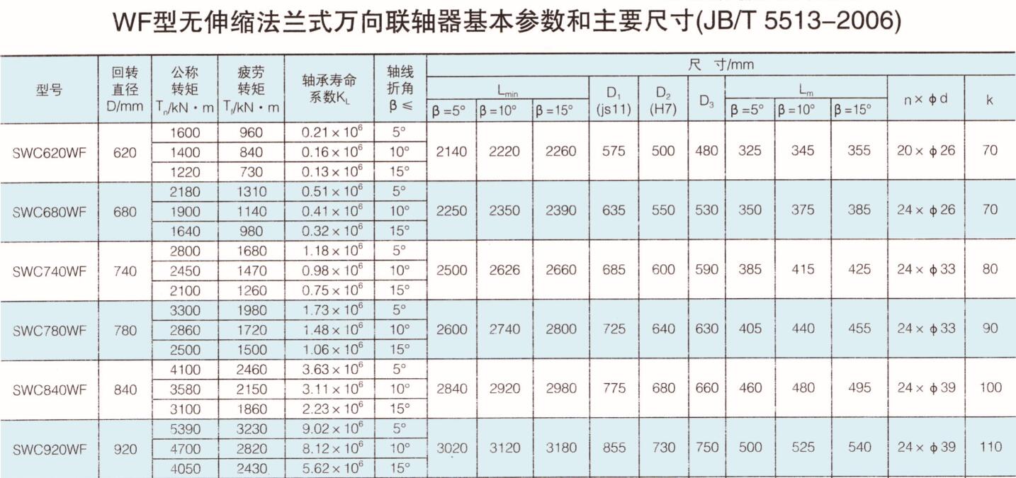 WF型大規(guī)格無伸縮法蘭式萬向聯(lián)軸器 |